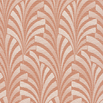 Ziegelrote Vliestapete mit markantem Barockmuster.