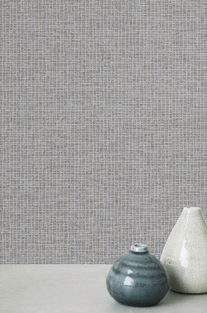 Graubraune Vliestapete mit markantem geometrischem Muster.