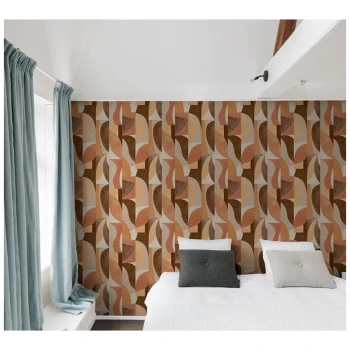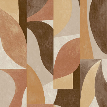 Moderne geometrische Vliestapete in Braun-, Beige- und Ockertönen.