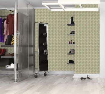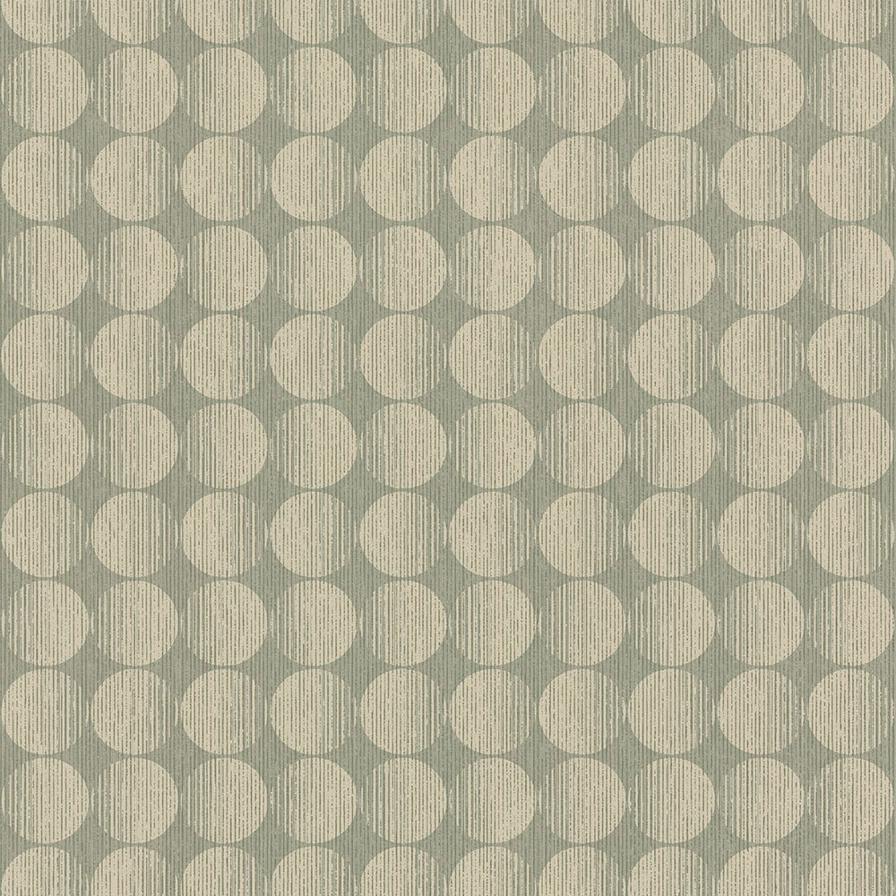Grüne Vliestapete mit Tupfen und einem markanten Muster.