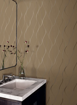 Goldmetallische Vliestapete, silberne und goldene Wellen.