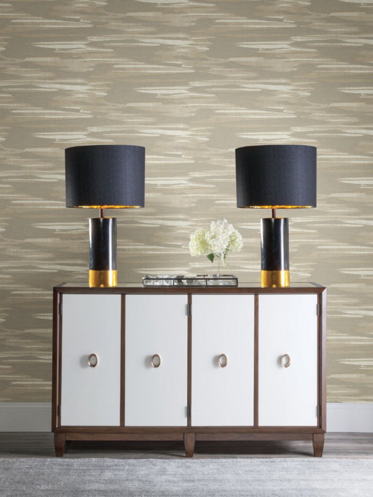 Beige Vliestapete, metallische Wolken.