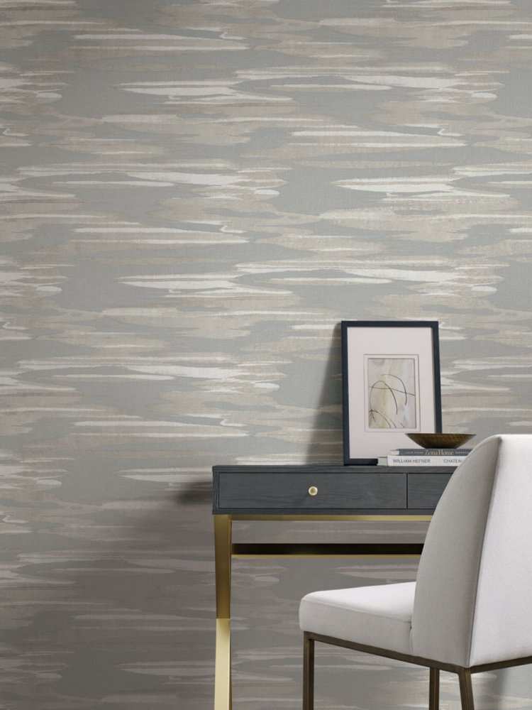 Grau-silberne Vliestapete, wolkenartiges Design.