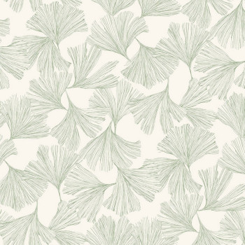 Weiße matte Vliestapete, grüne Ginkgoblätter.