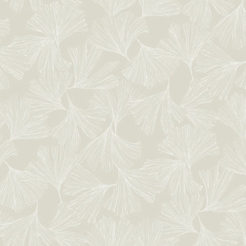 Metallic-Creme, Vliestapete, weiße Ginkgoblätter.