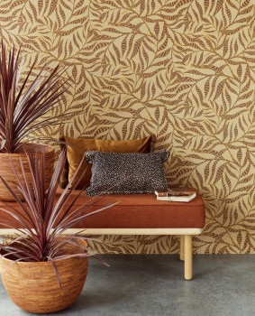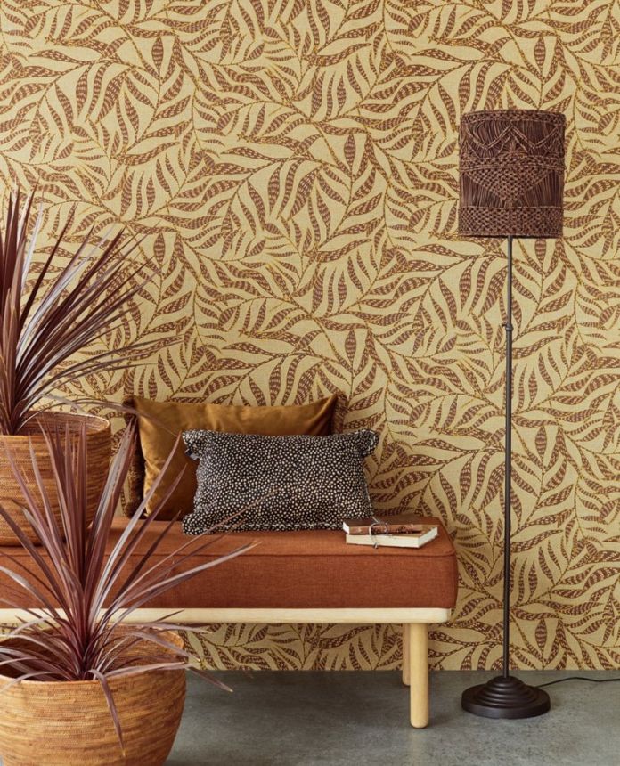 Luxury non-woven wallpaper for the wall, leaf pattern 391555, Terra, Eijffinger