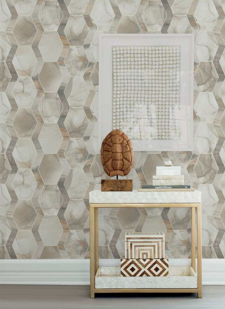 Grau-beige Tapete, Imitation von Marmorfliesen OS4285, Modern nature II, York