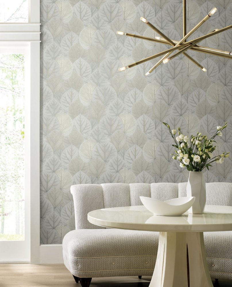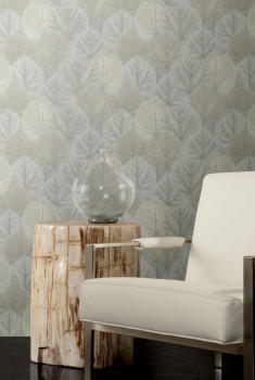 Grau-silberne Tapete, Blätter OS4246, Modern Nature II, York
