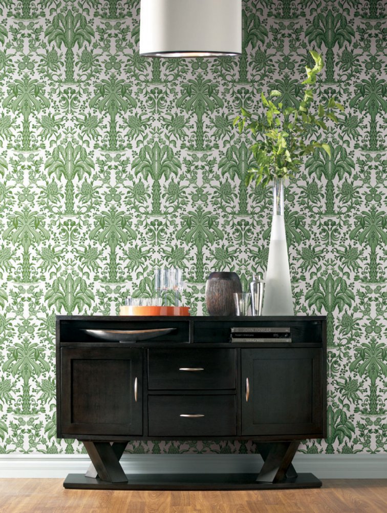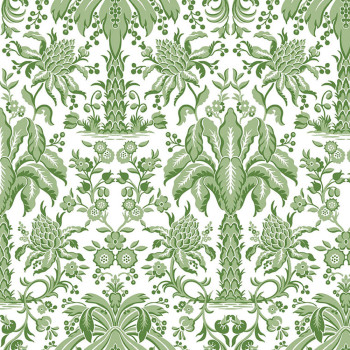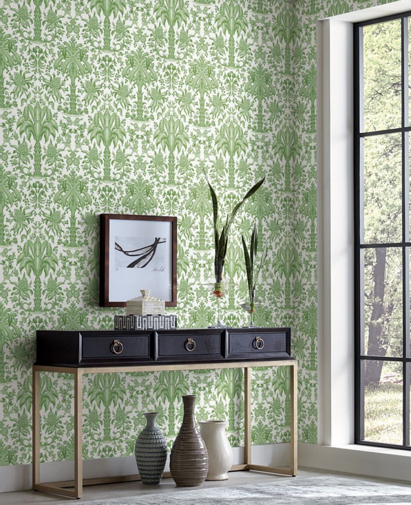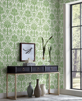 Grüne Papiertapete - Ornamente, Palmen DM5011, Damask, York