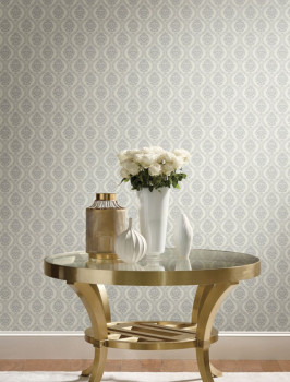Weiße vorgeklebte Tapete, graues Damastmuster DM5027, Damask, York