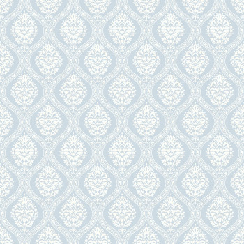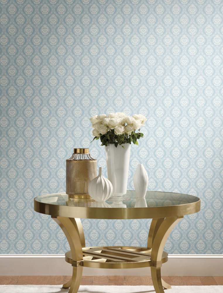 Hellblaue, vorgeklebte Tapete, weißes Damastmuster DM5026, Damask, York