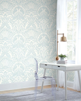 Blau-weiße vorgeklebte Tapete, Ornamente DM4999, Damask, York