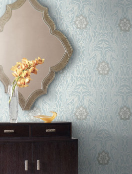 Blau-weiße, vorgeklebte Tapete - Ornamente DM4991, Damask, York