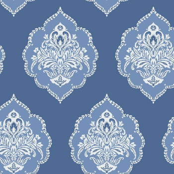 Blaue vorgeklebte Barocktapete DM4986, Damask, York
