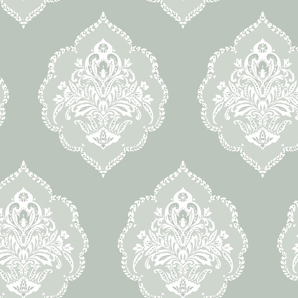 Grüne vorgeklebte Barocktapete DM4982, Damask, York