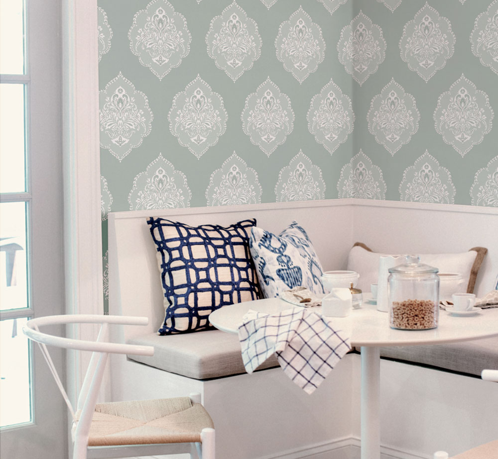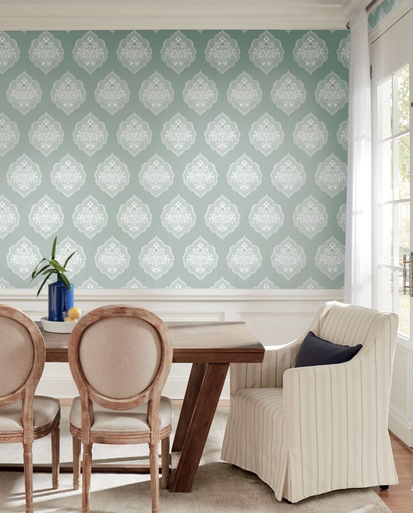 • Die Damask-Kollektion von vorgeklebten Tapeten und Papiertapeten ist voller luxuriöser ornamentaler Designs, die von Naturmotiven inspiriert sind.