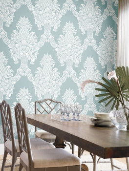 Türkisfarbene vorgeklebte Tapete, Ornamenten DM4973, Damask, York
