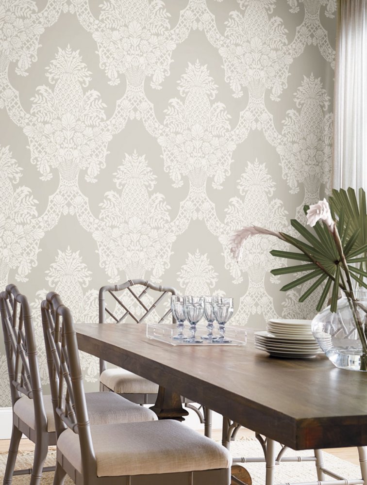 Grau-beige vorgeklebte Tapete, Ornamenten DM4972, Damask, York