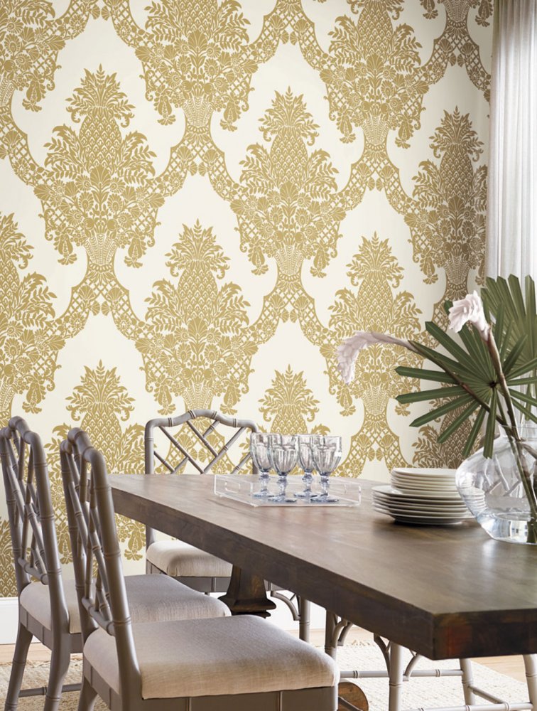 • Die Damask-Kollektion von vorgeklebten Tapeten und Papiertapeten ist voller luxuriöser ornamentaler Designs, die von Naturmotiven inspiriert sind.