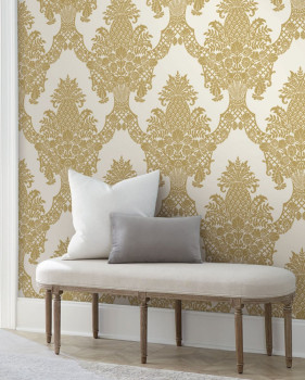 Cremefarbene vorgeklebte Tapete, Ornamenten DM4971, Damask, York