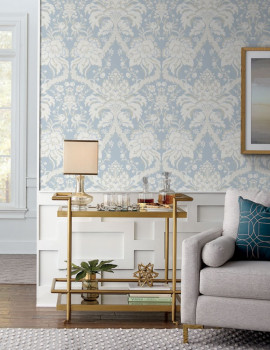 Blau-beige vorgeklebte Tapete, Ornamenten DM4955, Damask, York