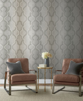 Vorgeklebte cremefarbene Tapete, beige und graue Linien, schattiertes Ombré-Ornamentmuster.