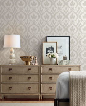 Grau-beige vorgeklebte Tapete, Ornamente DM4924, Damask, York