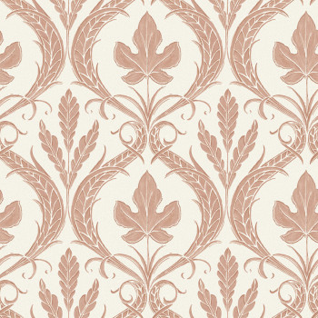 Glatte, vorgeklebte Tapete, Blätter, ornamentales Barockmuster im Terrakotta-Ton.