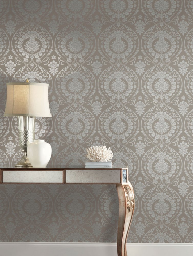 • Die Damask-Kollektion von vorgeklebten Tapeten und Papiertapeten ist voller luxuriöser ornamentaler Designs, die von Naturmotiven inspiriert sind.