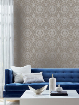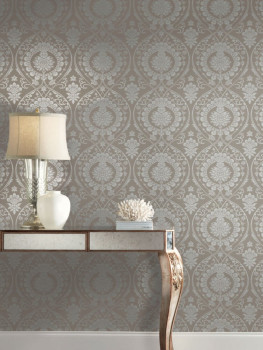 Braune vorgeklebte Barocktapete DM4902, Damask, York