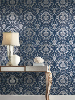 Blaue vorgeklebte Barocktapete DM4901, Damask, York
