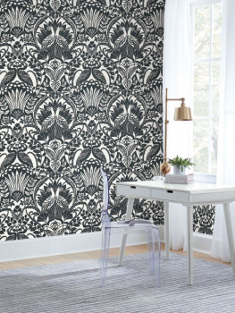 Schwarz-weiße vorgeklebte Tapete, Ornamente BW3931, Damask, York