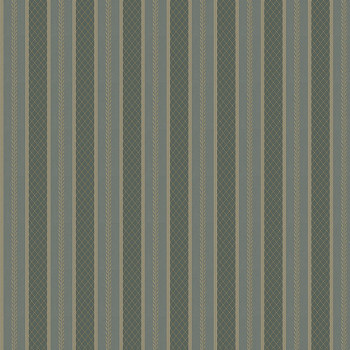 Vliestapete mit Vinyloberfläche in Grün- und Goldtönen mit Streifenmuster.