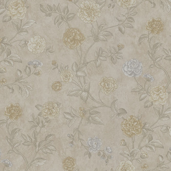 Vliestapete mit Vinyloberfläche in Beigetönen mit floralem Muster.