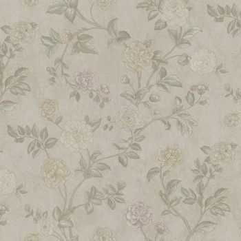 Vliestapete mit Vinyloberfläche in Beigetönen mit floralem Muster.