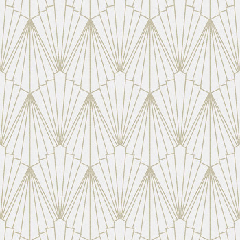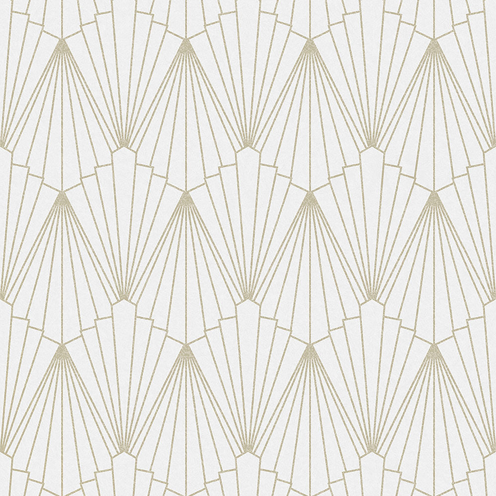 Luxuriöse Vliestapete mit goldenen geometrischen Ornamenten auf cremefarbenem Hintergrund.