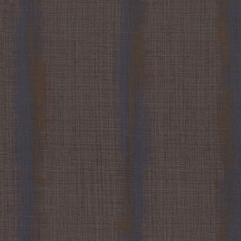 Luxustapete mit Vinyloberfläche mit markanter rauen Textur in Dunkelbraun mit blau-kupferfarbenen Streifen mit metallischen Reflexen.