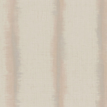 Luxustapete mit einer Vinyloberfläche mit markanter rauer Struktur in einem cremefarbenen Farbton mit graubraunen Streifen und metallischen Reflexen.