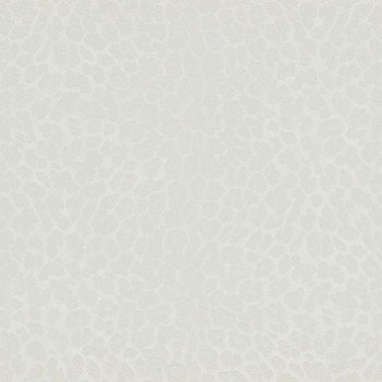 Luxustapete mit einer Vinyloberfläche, die Gepardenfell imitiert, in weißer Farbe mit silbernen Reflexen.
