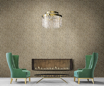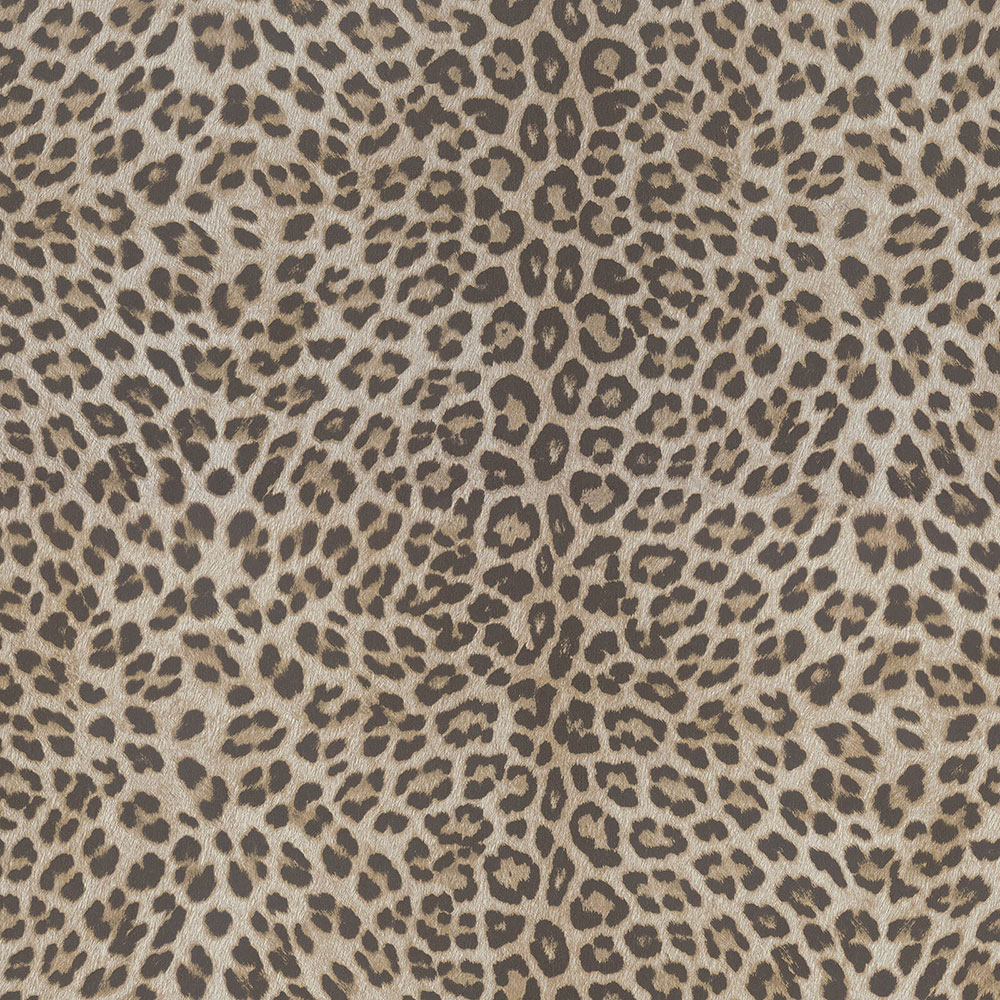 Luxustapete mit einer Vinyloberfläche, die Gepardenfell imitiert, in Beige- und Brauntönen mit goldenen Reflexen.