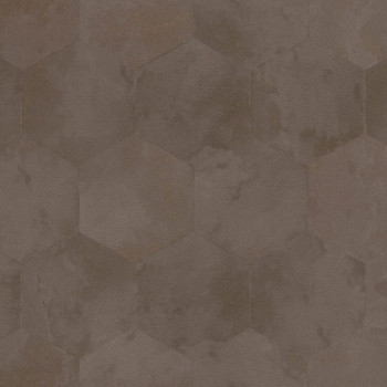 Luxustapete mit Vinyloberfläche in grau-brauner Farbe mit metallischen Reflexen, einer groben Struktur und einem geometrischen Muster aus Sechsecken.