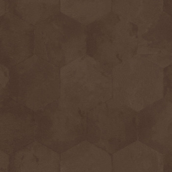 Luxustapete mit einer Vinyloberfläche in brauner Farbe mit metallischen Reflexen, einer rauen Textur und einem geometrischen Muster aus Sechsecken.