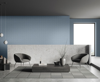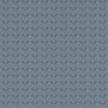 Luxuriöse Vliestapete mit Vinyloberfläche, dezent geprägtes geometrisches Muster, Blautöne mit Metallic-Glanz.