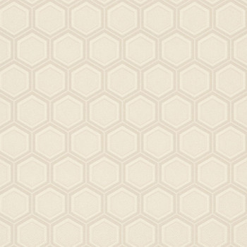 Luxuriöse beigefarbene Vliestapete mit Vinyloberfläche, geprägtes geometrisches Muster mit Sechsecken, halbglänzend.