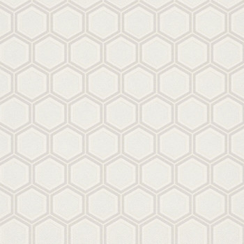 Luxuriöse cremefarbene Vliestapete mit Vinyloberfläche, geprägtes geometrisches Muster mit Sechsecken, halbglänzend.