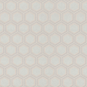 Luxuriöse beigefarbene Vliestapete mit Vinyloberfläche, geprägtes geometrisches Muster mit Sechsecken, halbglänzend.