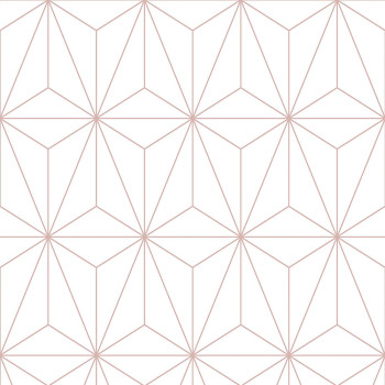 Weiße Vliestapete mit Papieroberfläche, geometrischem Muster, roségoldenen Linien.