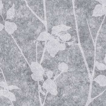 Vliestapete mit hochwertiger Papieroberfläche - silbergrau, Silhouetten von Zweigen mit Blättern.