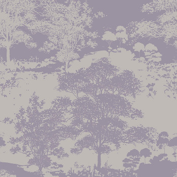 Vliestapete mit hochwertiger Papieroberfläche - lila und silber geschichtete Baumsilhouetten.