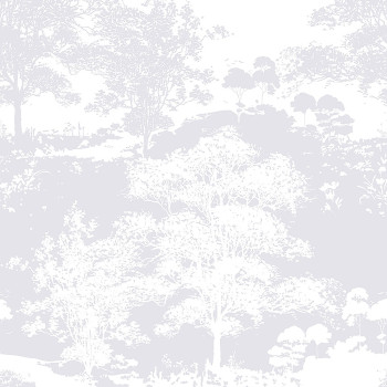 Vliestapete mit hochwertiger Papieroberfläche - weiß und silber geschichtete Baumsilhouetten.